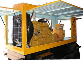 合川柴油发电机组/移动柴油发电机组设计独具创新,机动性高、重心低、制动安全、制造精良、外形美观。 合川拖车车架采用槽梁焊接成框架结构,节点选择合理、强度高、刚性好;同时装有钢板弹簧悬架结构;拖车采用高度可调节插销式牵引架,适用于各种高度牵引车;采用圆形钢管焊接直通式车轴,结构紧凑,安全可靠;车架四角设有机械式支撑装置,配备惯性行车制动、驻车制动和脱离应急制动,确保机组在各种状况下的安全;车架前端设有支撑轮,具备承受机组垂直载荷的功能的同时还具备导向功能;整车配备转向和刹车指示灯,同时装有尾灯标准插头